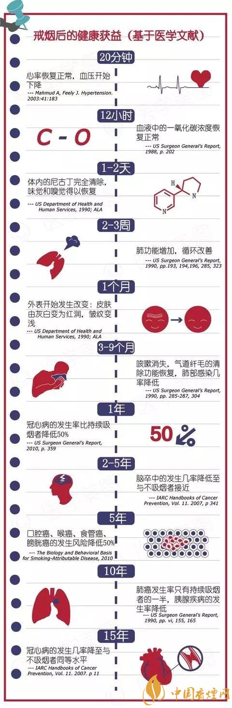 其次是第二張。這張也是讓我想抽煙的感覺降下來的原因。戒12小時的時候,看到血液中的一氧化碳濃度恢復(fù)正常了就很開心。努力一把,到1-2天,尼古丁清除。想抽的時候看一下,如果自己再抽的話就會讓之前的一切大打折扣,而且要重新開始。一想到這里就又會不太想抽煙了。