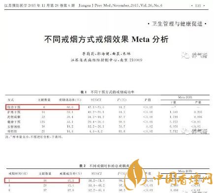 2015年江蘇省疾病預(yù)防控制中心統(tǒng)計(jì)了1989-2014年之間的208項(xiàng)戒煙研究記錄,結(jié)果表明:以藥物干預(yù)+健康干預(yù)的綜合干預(yù)方式效果最好,戒煙用時越短越好。