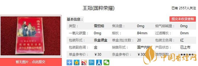 三、王冠國粹榮耀香煙參數(shù)