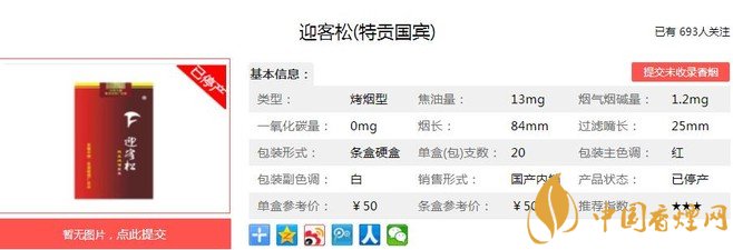選用享譽(yù)中外的優(yōu)質(zhì)煙葉作為配方主體,產(chǎn)品香氣濃郁,煙氣厚實(shí)自然,口感舒適干凈。產(chǎn)品自然醇化,秉承迎客松產(chǎn)品一貫的優(yōu)良品質(zhì),精心配制,獨(dú)具香韻。即保持了迎客松優(yōu)美的清香風(fēng)格,又賦予成熟煙草的焦甜芬芳,香氣韻味豐富,渾然一體,著重體現(xiàn)優(yōu)雅細(xì)膩、醇和自然、清新宜人的特點(diǎn),口感舒適,回味甘甜,勁頭適中。經(jīng)香煙網(wǎng)小編市場(chǎng)調(diào)查迎客松特貢國(guó)賓售價(jià)為50元/包。