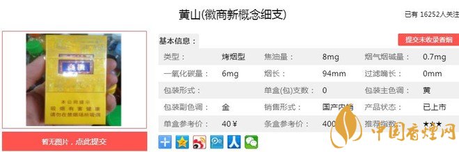 一、黃山徽商新概念細支香煙價格