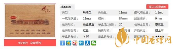 | 類型 :烤煙型 | 焦油量 :11mg | 煙氣煙堿量 :1.1mg | 一氧化碳量 :11mg |