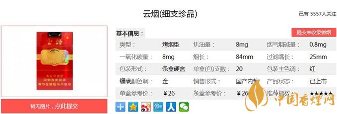 三、云煙細支珍品香煙參數(shù)