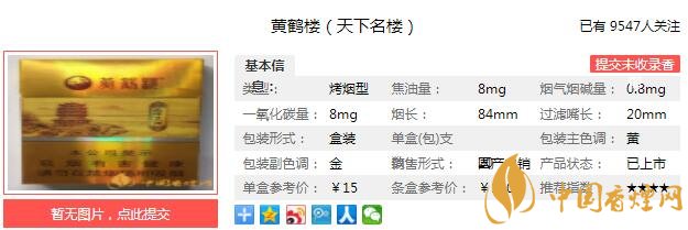 黃鶴樓天下名樓煙支長84mm,屬于細支煙,只唯細,不唯長,這似乎在淡化細支煙的“女士煙”身份標簽,讓消費者不把黃鶴樓天下名樓當成“女士煙”來看待。下面我們一起來看黃鶴樓天下名樓的參數(shù)信息:焦油量:8mg 煙堿量:0.8mg 一氧化碳量:8mg