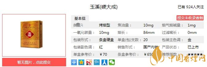 一、玉溪硬大成香煙價格