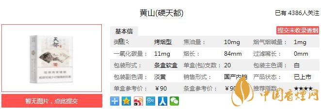 三、黃山硬天都香煙參數(shù)