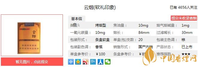 以上便是由香煙網(wǎng)小編為大家介紹的關(guān)于云煙軟禮印象怎么樣 云煙軟禮印象口感及參數(shù)介紹的相關(guān)信息,想要了解更多有關(guān)內(nèi)容請(qǐng)點(diǎn)擊:黃金葉天韻多少錢一包 黃金葉天韻口感及參數(shù)分析