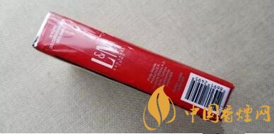 煙盒的左側(cè)很簡潔,注意在中上部紅色L&M Logo下,用銀色印制有RED LABEL LONG的字樣,顯示這是一款100s長支卷煙。下部黑框內(nèi)標識有理化指標,10mg焦油含量。