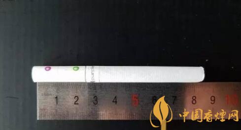 拿出一支香煙仔細(xì)端詳,煙支整體顏色很素雅,過濾嘴上的兩顆爆珠紫色的藍(lán)莓珠在靠尾端一點(diǎn),綠色的薄荷珠在濾嘴的另一端,一排降焦線相當(dāng)明顯,在不用強(qiáng)光看的情況下都清晰可見。