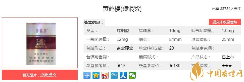 三、黃鶴樓硬銀紫香煙參數(shù)