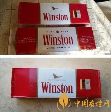 這款伊朗完稅軟紅云斯頓的稅標(biāo)是貼在條盒上的。條盒是云斯頓經(jīng)典的紅—白—紅三段橫排設(shè)計,Winston標(biāo)識上有金色的飛鷹圖案,比那款摩洛哥版本的設(shè)計要新一些。