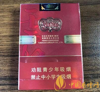 云煙中支延續(xù)了云煙細(xì)支珍品整體設(shè)計(jì)元素和風(fēng)格。保留云煙細(xì)支珍品傳統(tǒng)朱砂紅基底色、祥云如意圖標(biāo)、孫正琦先生手書“云煙”字樣等傳統(tǒng)設(shè)計(jì)元素,并采用新的卡紙基底涂布、暗紋壓印等新工藝,煙盒基底顏色較傳統(tǒng)云煙細(xì)支珍品的朱砂紅要偏深一些。正中間標(biāo)識(shí)性的金腰帶,上面印有云紋的圖案,金色祥云上有兩處云煙拼音,下面還有珍品香煙字樣,黑色字體,設(shè)計(jì)感十分強(qiáng)。