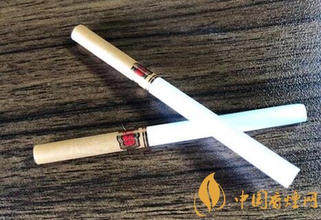 撕掉內(nèi)襯紙,可以看到煙支是10-10的排列,煙支長87mm,過濾嘴長37mm,細(xì)觀煙支,切口整齊,煙支小巧精美,握在手里舒適度強(qiáng)。暗黃色帶有反光顆粒的過濾嘴上印著與外盒相輝映的金腰帶圖形,只不過祥云底色改為紅色。煙支相接處有兩條粗細(xì)不一的金色圓環(huán)圍繞。小小一只濾嘴上用了那么多印刷工藝,精細(xì)的同時(shí),成本也不低。