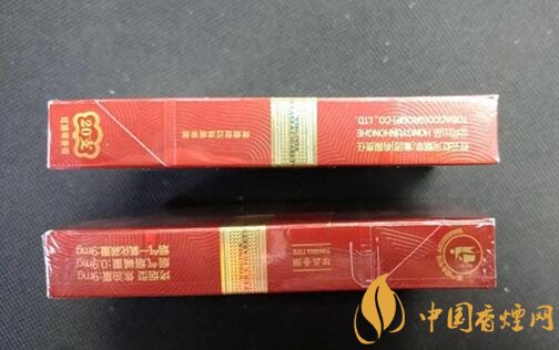 煙盒的左右兩側(cè),金腰帶環(huán)繞在中間,上面還印有黑色的小字英文。左側(cè)還有紅云紅河集團(tuán)的中英文標(biāo)示和烤煙型過濾嘴香煙字樣。煙盒的右側(cè)則是這款煙的理化指標(biāo):焦油量:9mg,煙氣煙堿量:0.9mg,煙氣一氧化碳量:9mg,還印著珍品香煙字樣。