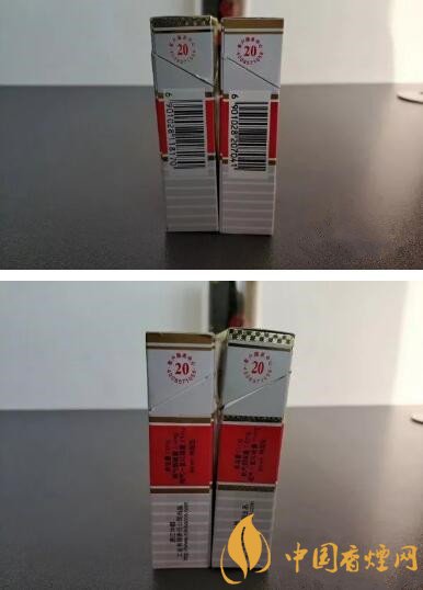 另一處不同就是煙盒上部和底部的顏色有一點點差異:全國版的顏色為灰白色,而浙版的顏色非常的接近于白色。