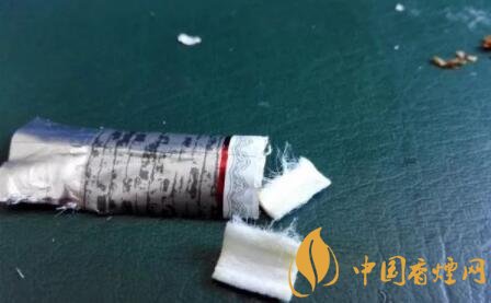 剪開鏤空樣式的過濾嘴,會(huì)發(fā)現(xiàn)有一層薄薄的黃色紙張,附著于過濾嘴紙張之上。鏤空過濾嘴的長度,約為6mm。