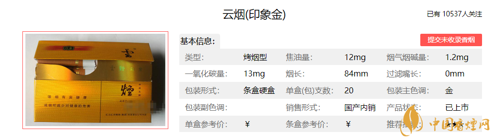云煙1958印象金價格參數(shù)介紹及口感分析