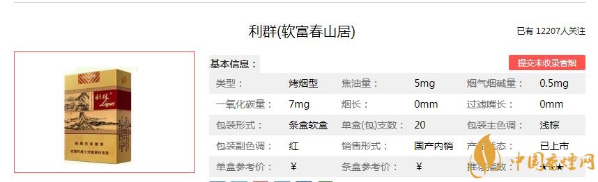 煙葉資源,秉承純煙葉打造,不添加任何香精香料,“”有“純天然、低焦低害”、“華夏第一支”的美譽(yù)。包裝設(shè)計(jì)上,無論是外包裝上還是煙支圖案,利群(富春山居)都完美展現(xiàn)了傳統(tǒng)文化之美和人文氣息。以帶給目標(biāo)消費(fèi)人群“本色本香、自然純正”的高品質(zhì)品吸感受。目前利群(富春山居)主要有軟包和硬盒兩種規(guī)格,零售價(jià)格均超過5000元一條,雖然價(jià)格高昂,大多數(shù)煙民都抽不起。