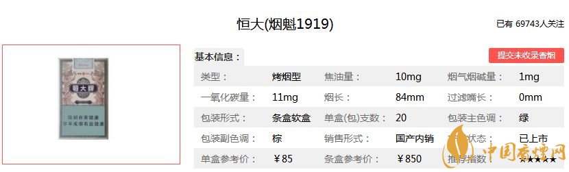 恒大(煙魁1919)煙(俗稱:Hengda Yankui 1919)是上海煙草集團(tuán)有限責(zé)任公司旗下品牌恒大香煙推出的一款焦油含量10mg的烤煙型香煙。