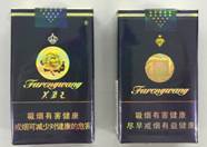 條盒背面有全息鐳射圖案防偽,變換不同角度看,“皇冠、FURONGWANG、芙蓉王”圖案及文字立體感強,圖層分離清晰。條盒背面透明紙上有18位黑色噴碼,可手機短信查詢真?zhèn)巍?/p>