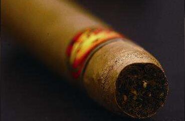 外面有一層“保護(hù)層”,上方被茄標(biāo)環(huán)抱,茄長110mm,環(huán)徑47mm。茄衣色澤鮮亮,沒有明顯的葉紋,且顏色油亮,看的出是醇化過,且發(fā)酵不錯(cuò)的。整體感覺煙支細(xì)密緊實(shí),透露出雪茄技師精湛的技藝。