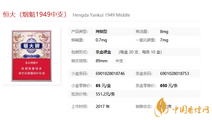 “恒大(煙魁1949中支)”煙支周長介于細(xì)支煙和常規(guī)煙之間,在吸味和滿足感上做到了均衡和統(tǒng)一。