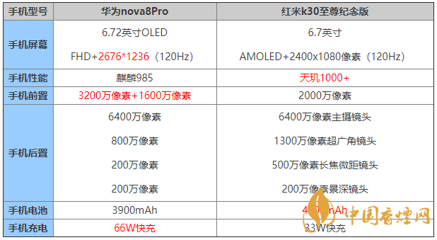 華為nova8pro和紅米k30至尊紀(jì)念版參數(shù)對比-哪款手機更好