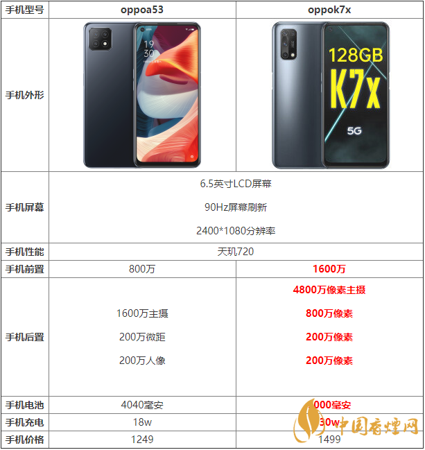 oppoa53和k7x都是oppo手機中的中低端手機,那么這兩款手機參數(shù)上有什么區(qū)別?哪款手機的性價比更高?哪款手機值得入手?下面香煙網(wǎng)小編將對oppoa53和k7x參數(shù)對比進(jìn)行介紹,感興趣的朋友一起來看看吧!