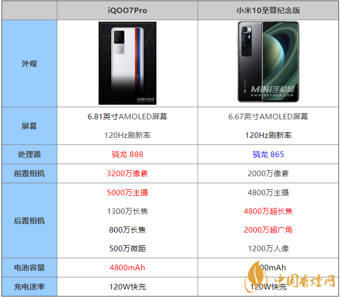 iQOO7Pro和小米10至尊紀念版參數(shù)對比 有哪些區(qū)別