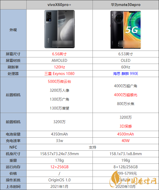 vivox60pro+和華為mate30epro有哪些區(qū)別?肯定會(huì)有朋友在糾結(jié),vivox60pro+和華為mate30epro這兩款手機(jī)選哪個(gè),哪個(gè)性價(jià)比更高更值得購買,接下來香煙網(wǎng)小編就帶來了參數(shù)對比,一起來看看有什么區(qū)別吧!