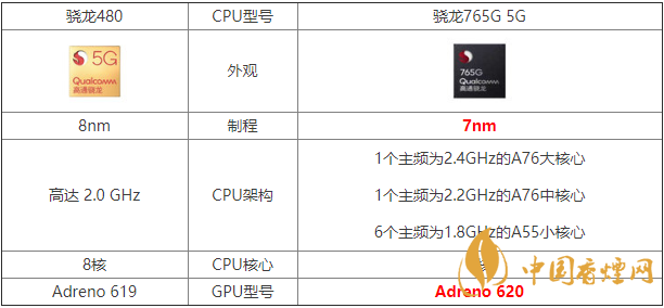 小結(jié):驍龍765G的制作工藝7納米,比驍龍480?的8納米技術(shù)領(lǐng)先一代