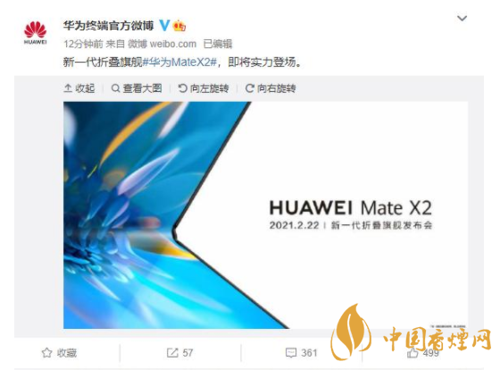 2月3日9點華為終端官方微博正式發(fā)布:新一代折疊旗艦華為MateX2,即將實力登場。根據官方的信息華為Mate X2將于2021年2月22日正式發(fā)布,不出意外華為Mate X2應該是傳統(tǒng)意義上新年第一機,因為那一天是正月十一。現在不得不佩服余承東的勇氣敢在春節(jié)之前公布華為Mate X2的發(fā)布日期,畢竟中間有一個春節(jié)七天長假這對于預熱機型是極為不利的。但華為就是華為向來不走尋常路,接下來估計官方會正式進入華為Mate X2的預熱周期。