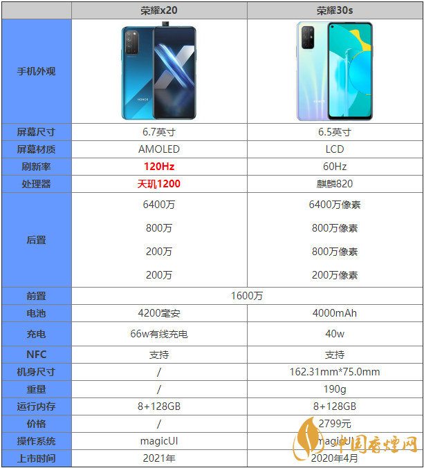 榮耀x20和榮耀30s這兩款手機都是大家十分關(guān)注的,那么榮耀x20和榮耀30s有什么區(qū)別?哪款手機更值得入手?下面香煙網(wǎng)小編為大家?guī)順s耀x20和榮耀30s參數(shù)對比,感興趣的朋友一起來看看吧!