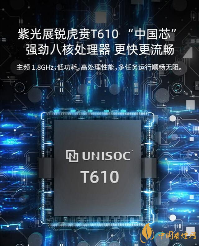 虎賁T610采用12nm制程工藝,由兩顆1.8 GHz的Arm Cortex-A75 CPU 和六顆1.8 GHz的Arm Cortex-A55 處理器組成,GPU 采用的是614.4MHz 的Mali G52。