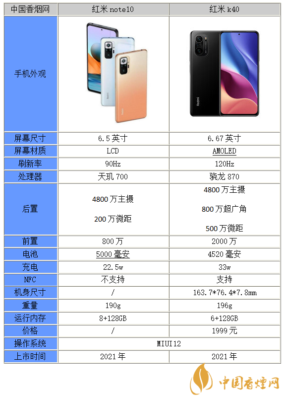 以上就是小編收集到的紅米note10和紅米K40參數(shù)對比-紅米note10和紅米K40性能分析的相關(guān)內(nèi)容,以上內(nèi)容均來源于網(wǎng)絡(luò),僅供參考,一切以實際為準(zhǔn),更多最新數(shù)碼資訊請關(guān)注香煙網(wǎng)。