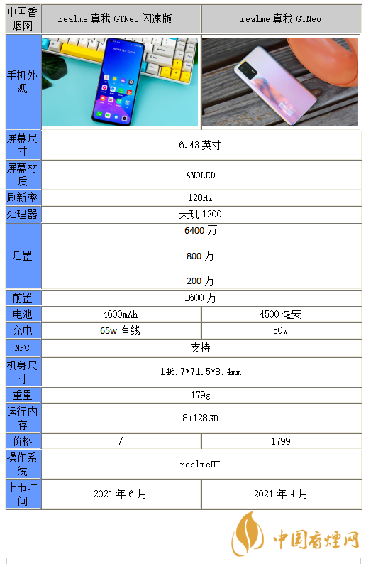 以上就是小編收集到的真我GTneo閃速版和真我GTneo有什么區(qū)別-參數(shù)對(duì)比分析的相關(guān)內(nèi)容,以上內(nèi)容均來(lái)源于網(wǎng)絡(luò),僅供參考,一切以實(shí)際為準(zhǔn),更多最新數(shù)碼資訊請(qǐng)關(guān)注香煙網(wǎng)。