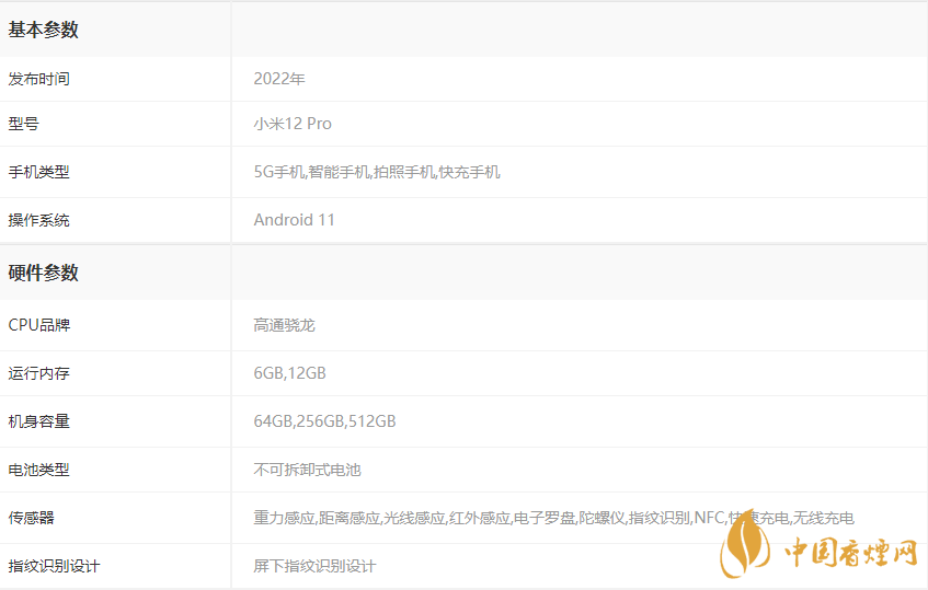 以上就是香煙網(wǎng)小編為大家整理收集有關(guān)小米12pro手機(jī)參數(shù)的相關(guān)信息。以上資料來(lái)源于網(wǎng)絡(luò),如需了解更多資訊,請(qǐng)持續(xù)關(guān)注香煙網(wǎng),小編將會(huì)為大家?guī)?lái)更多信息。