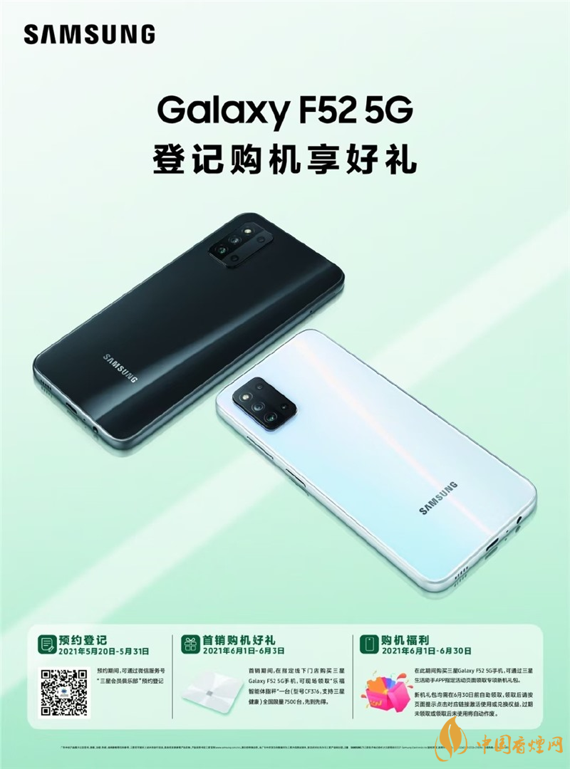 三星 Galaxy F52 5G 將于 5 月 20 日開啟國行預(yù)約,6 月 1 日正式開售,海報與真機圖已曝光。