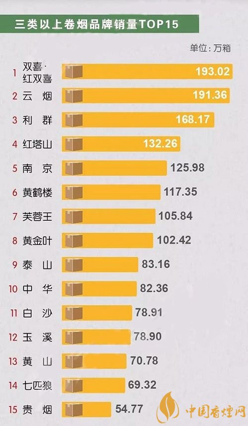 一、三類以上卷煙品牌銷量雙喜紅雙喜香煙第一