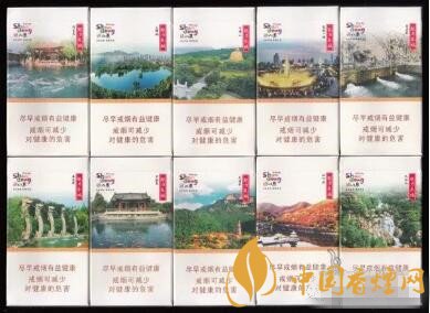 濟(jì)南十景名稱:趵突泉、大明湖、千佛山、泉城廣場(chǎng)、黑虎泉、五龍?zhí)?、百脈泉、靈巖寺、紅葉谷、九如山。濟(jì)南十景的包裝與“青島十景”的差別比較明顯,兩個(gè)側(cè)面全部采用金色。另外,警示語位置正版明顯偏上。