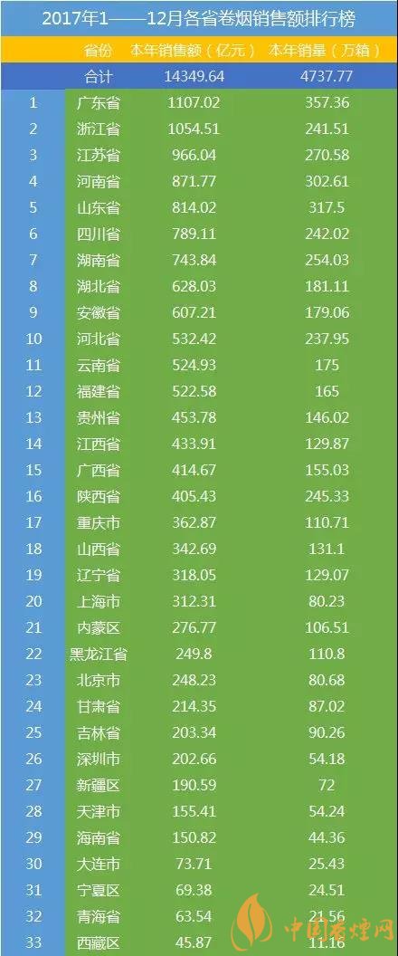 以上就是香煙網(wǎng)小編為大家整理介紹的關(guān)于中國(guó)香煙銷量排行榜前三十名以及2017各省香煙銷售額排行榜。更多了解點(diǎn)擊:2017銷量最好的煙是什么 重點(diǎn)品牌香煙銷量排行榜表2017前10名