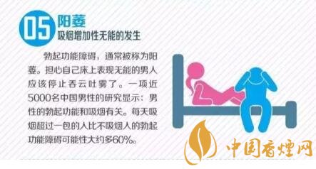勃起功能障礙,通常被稱為陽萎。擔心自己床上表現無能的男人應該停止香云吐霧了。一項近5000名中國男性的研究顯示:男性的勃起功能和吸煙有關。每天吸煙超過一包的人比不吸煙人的勃起功能障礙可能性大約多60%。想要了解更多內容請點擊:吸煙的10個可怕事實 不能不知