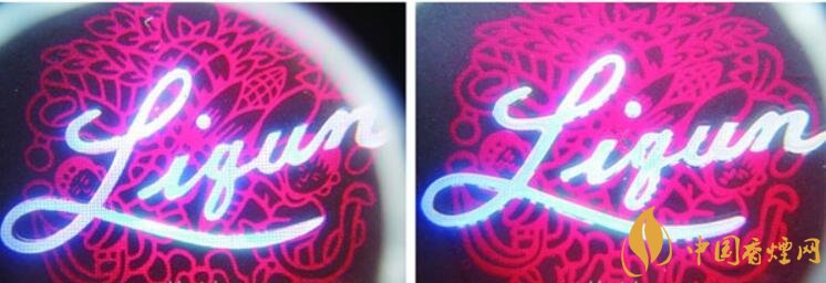 1.真煙小包背面“Liqun”拼音鐳射邊緣光滑清晰,而假煙則邊緣不光滑,有銀色滲入紅色圖案部分。