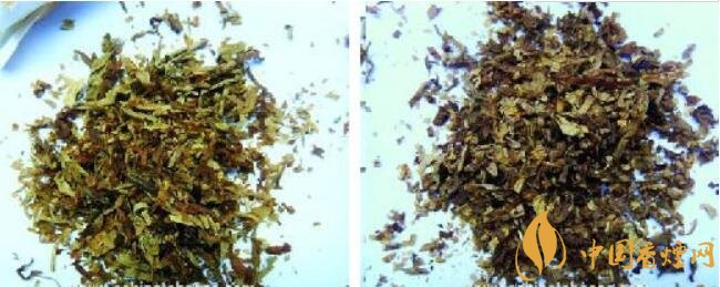 真煙煙絲呈現(xiàn)出橙黃色,切絲寬度均勻且有油潤(rùn)性;假煙煙絲呈現(xiàn)出淺黃色,切絲寬度不一,含末率較高,與真品煙絲成色比對(duì)存在明顯差異。