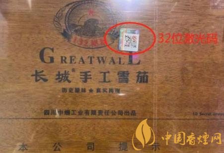 一般正品盒子正面貼有拇指蓋寬長、透明的32位激光碼防偽標(biāo)志,四川省是從2019年開始對每一家零售戶的每一條雪茄煙,都打上了該零售戶唯一的32位激光碼(但是全國各省的情況不一樣,有的地方煙草公司還沒有開始實(shí)行打激光碼)。32位碼上包含了打碼時間(能查詢卷煙銷售日期)、件碼派生號(能查詢卷煙的生產(chǎn)日期)、各市、縣煙草標(biāo)識(各市、縣的唯一標(biāo)識)、零售戶的唯一編碼(供消費(fèi)者和專賣人員辨別卷煙信息)。