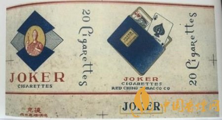 二十世紀四十年代,鴻順煙廠出品了“JOKER”卷煙,即“捷克”卷煙,此“捷克”非彼捷克(捷克斯洛伐克)。捷克煙標只是“JOKER”的直譯音,而“JOKER”英意譯為“小丑”,也就是撲克牌中的百搭,大小怪,與捷克國家毫不相干。煙標正版上橢圓形框,似覆在菱形花紋撲克牌的背面上,其內(nèi)為一個中世紀衛(wèi)士的肖像,并不是小丑的相貌。副版上畫有一個傾斜的藍色紙牌套子,套內(nèi)呼之欲出一些撲克牌,面上兩張分別是黑桃“A”和紅桃“K”牌面,即一副撲克牌中牌面點數(shù)的最大數(shù)和最小數(shù)。而在橋牌中,撲克牌“A”確是最大的。當然,不同的撲克牌游戲,有其不同的游戲規(guī)則。鴻順煙廠設計“捷克”煙標,取百搭大小王及其這兩張牌面作為煙標的主角,自有他的設計理念和商業(yè)用意,或許迎合當時人們的喜好,或是市場競爭的需要,在此,看者只能揣摩,不加定論。