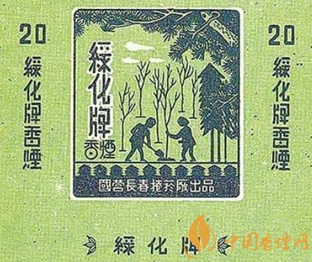 上世紀(jì)50年代,國(guó)營(yíng)長(zhǎng)春卷煙廠出品了“綠化牌”煙標(biāo)。這枚煙標(biāo)以綠色為底色,主版采用剪影的形式描繪了一幅植樹圖,畫面上一個(gè)人扶著樹苗,另外一個(gè)人揮鍬培土,不遠(yuǎn)處是已經(jīng)栽種好的一棵棵樹苗,在樹苗右上方,高大濃密的松樹如母親一般呵護(hù)著小樹苗;副版上印著“大家植樹 綠化祖國(guó) 護(hù)林防火 人人有責(zé)”的字樣。