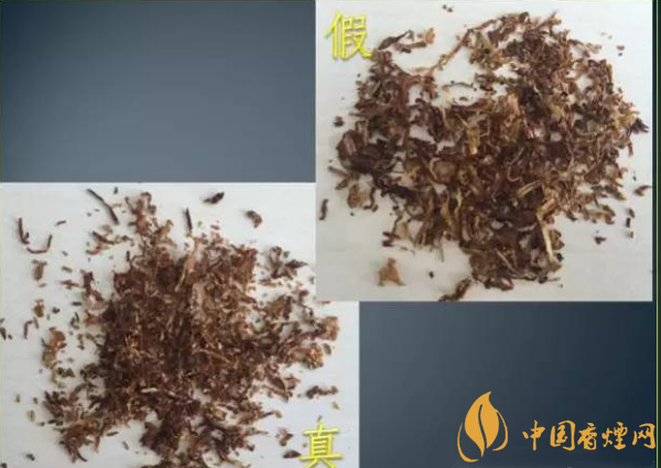 假冒卷煙:煙絲含水率低,切絲不均勻,煙絲結構不正確。