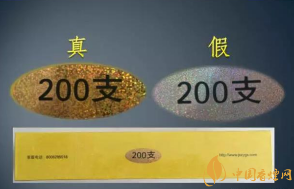 條盒側面的“200支”,真假卷煙采用不同材質的素面鐳射電化鋁。