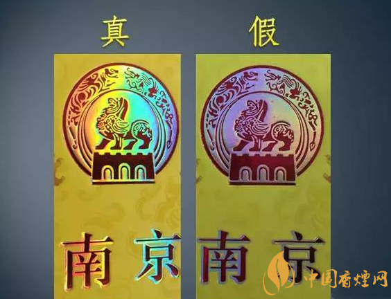 南京(九五)香煙真假主要從條盒圖案、南京字體、條盒側面、條盒內部、小盒頂部鐳射全息圖、小盒內襯紙、接裝紙及濾棒、煙絲這8個方面來辨別。